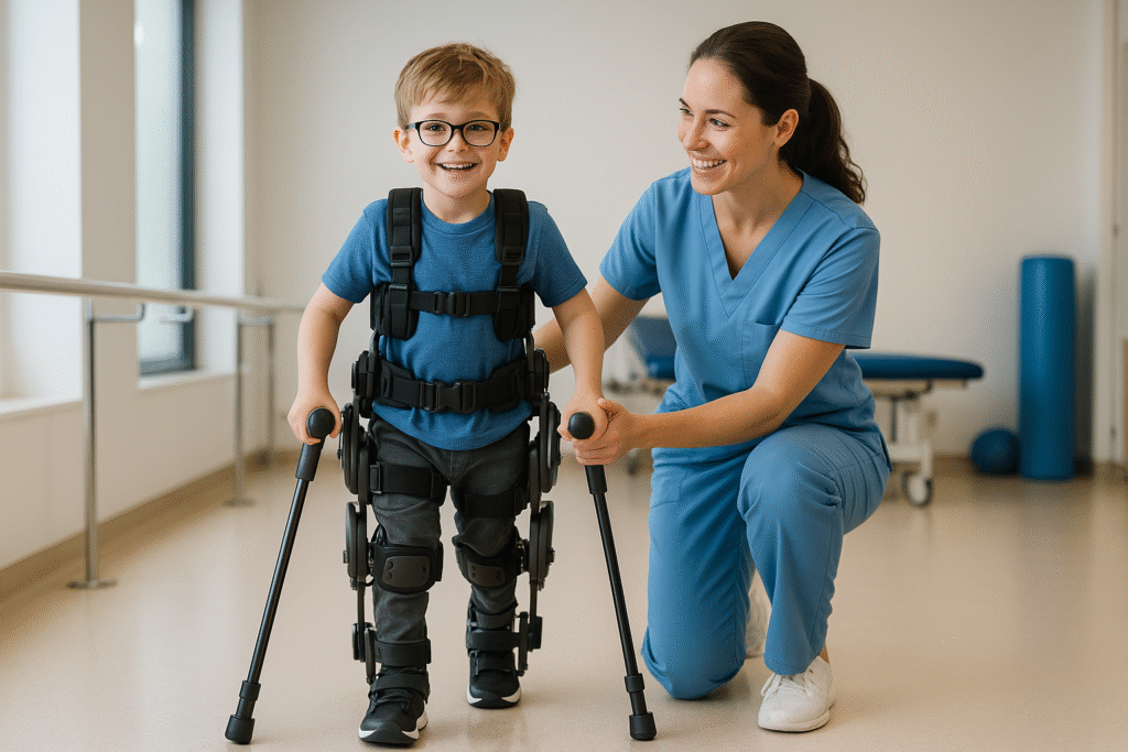• Rehabilitación clínica: hospitales en España y Europa utilizan exoesqueletos pediátricos, como el proyecto HANK de Marsi Bionics, que permite a niños con parálisis ponerse de pie y entrenar la marcha.